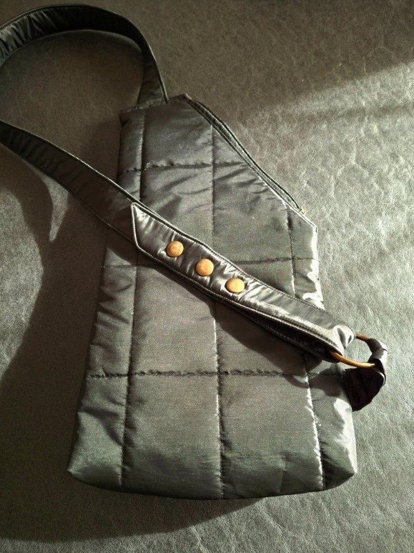 Realizada con matelassé. Dos bolsillos con fuelle, uno cierra con broches y otro con cierre. Bolsillo con broche para tarjeta y acceso al cuerpo principal con cierre. Tira ajustable. Tanto bolsillos como cuerpo forrados.