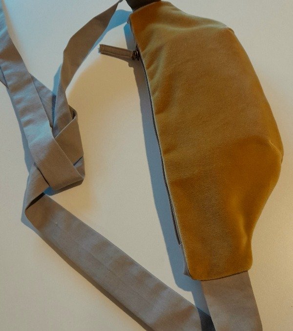 Realizada con pana de algodón de tapicería, bolsillito en el forro interior. Tiras de gabardinas, se ajustan con un nudo.